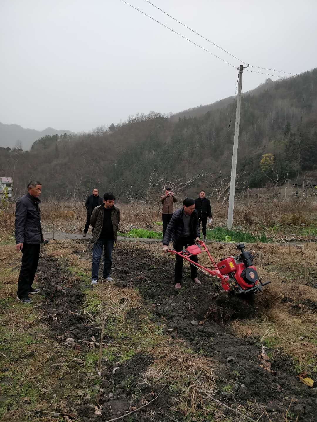 發(fā)展中心小王一行,給村上送去了價值6600元的兩臺小型旋耕機,用于